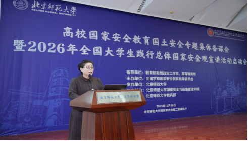 12月18日,由教育部、全国学校国家安全教育指导委员会联合主办的高校国家安全教育国土安全专题集体备课会暨2026年全国大学生践行总体国家安全观宣讲活动启动会,在北京师范大学隆重召开。本次会议以“夯实育人根基,筑牢安全防线——新时代高校国家安全教育国土安全专题教学质量提升与教学创新”为核心主题,正式发布《高校国家安全教育国土安全专题课程教学指南》,为全国高校国土安全教学划定标准、明确方向。青海师范大学国家安全与应急管理学院韩忻忆副教授受邀参会,代表学院深度参与教学研讨,贡献兼具实践价值与创新思路的教学建议。